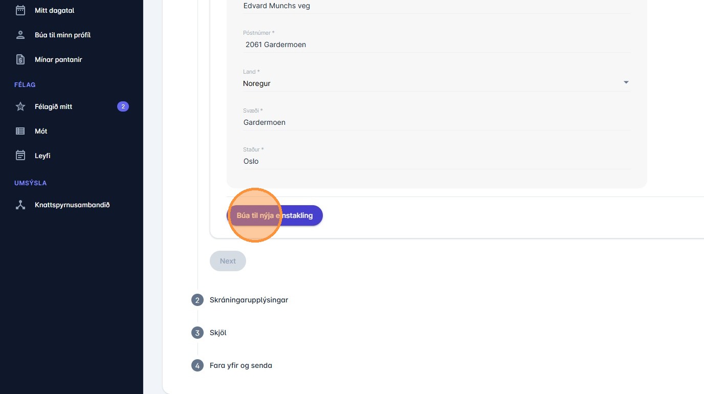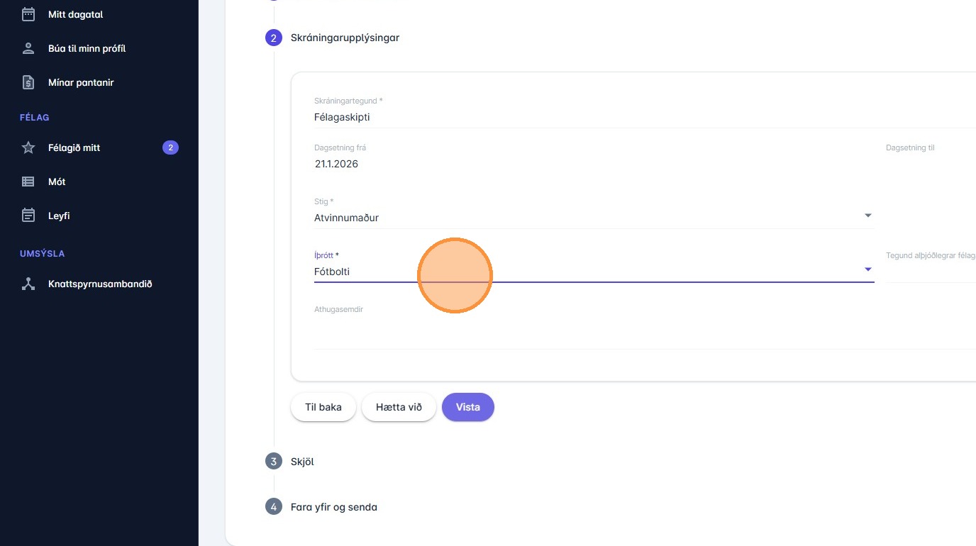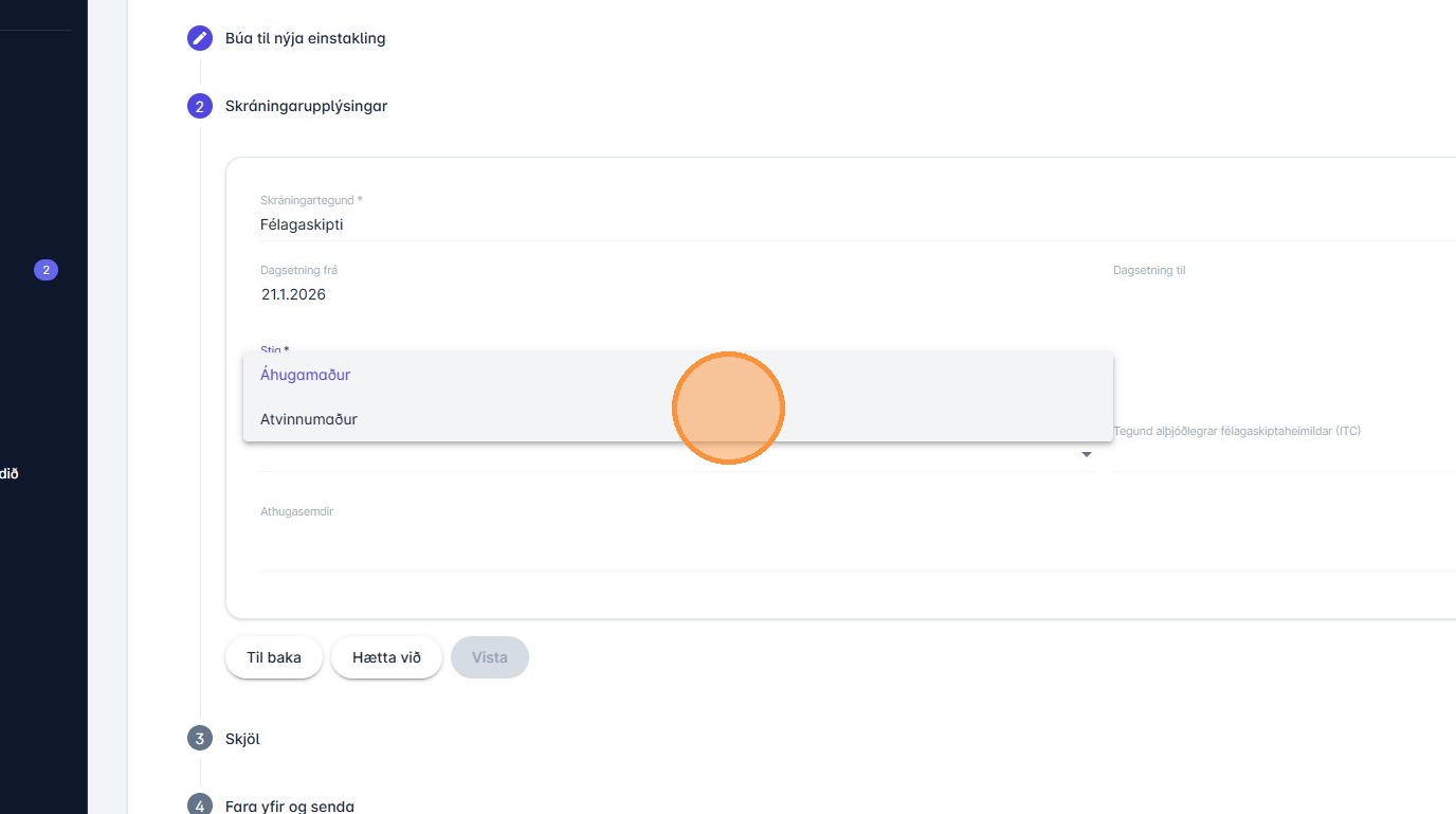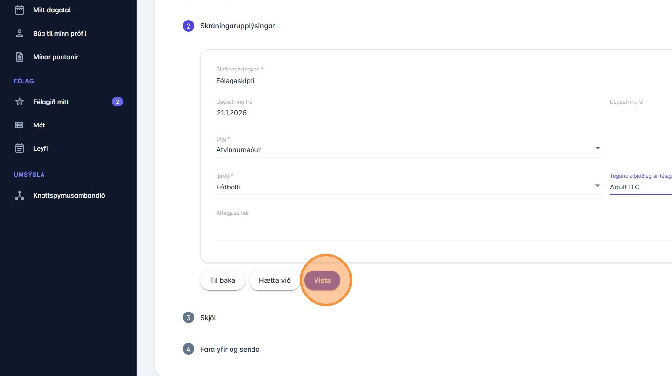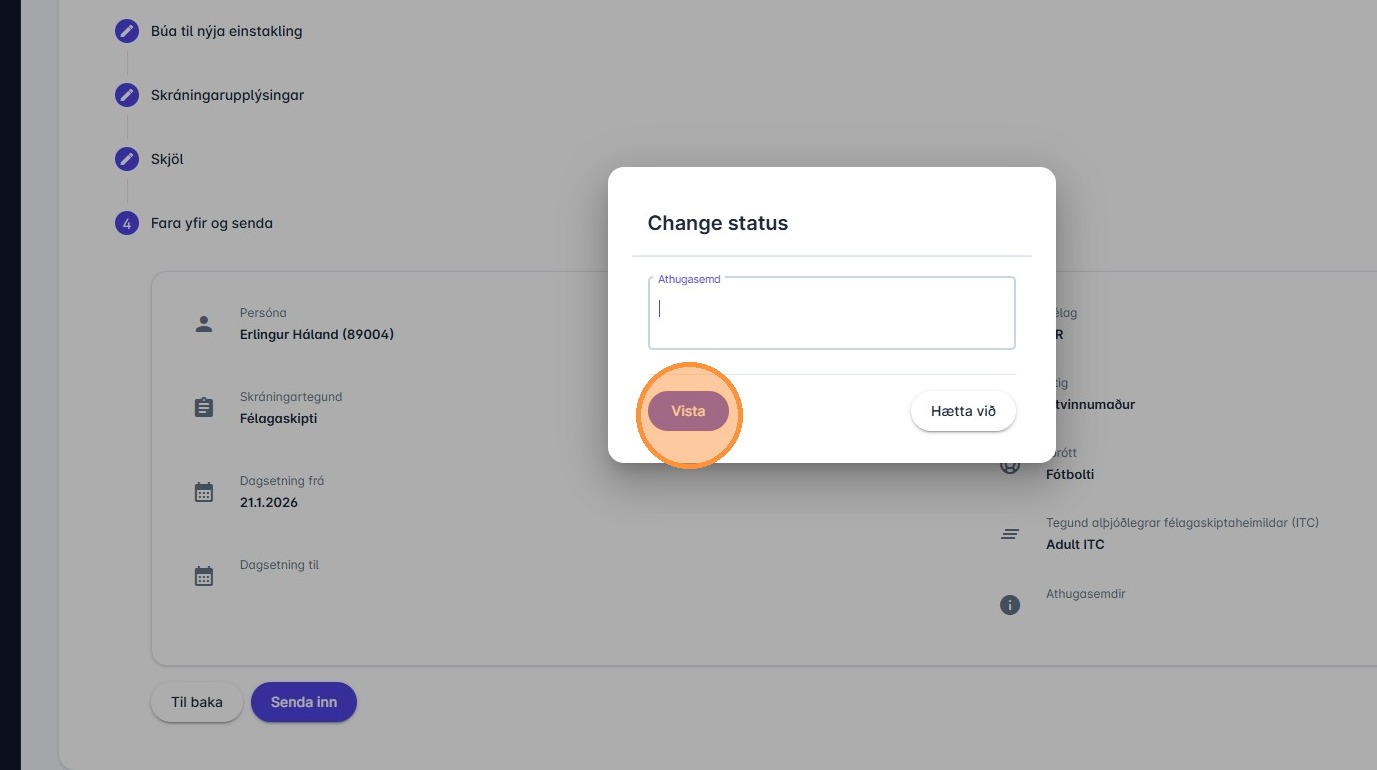 1. Athugið að skráningarferli erlendra félagaskipta hefst í TMS.