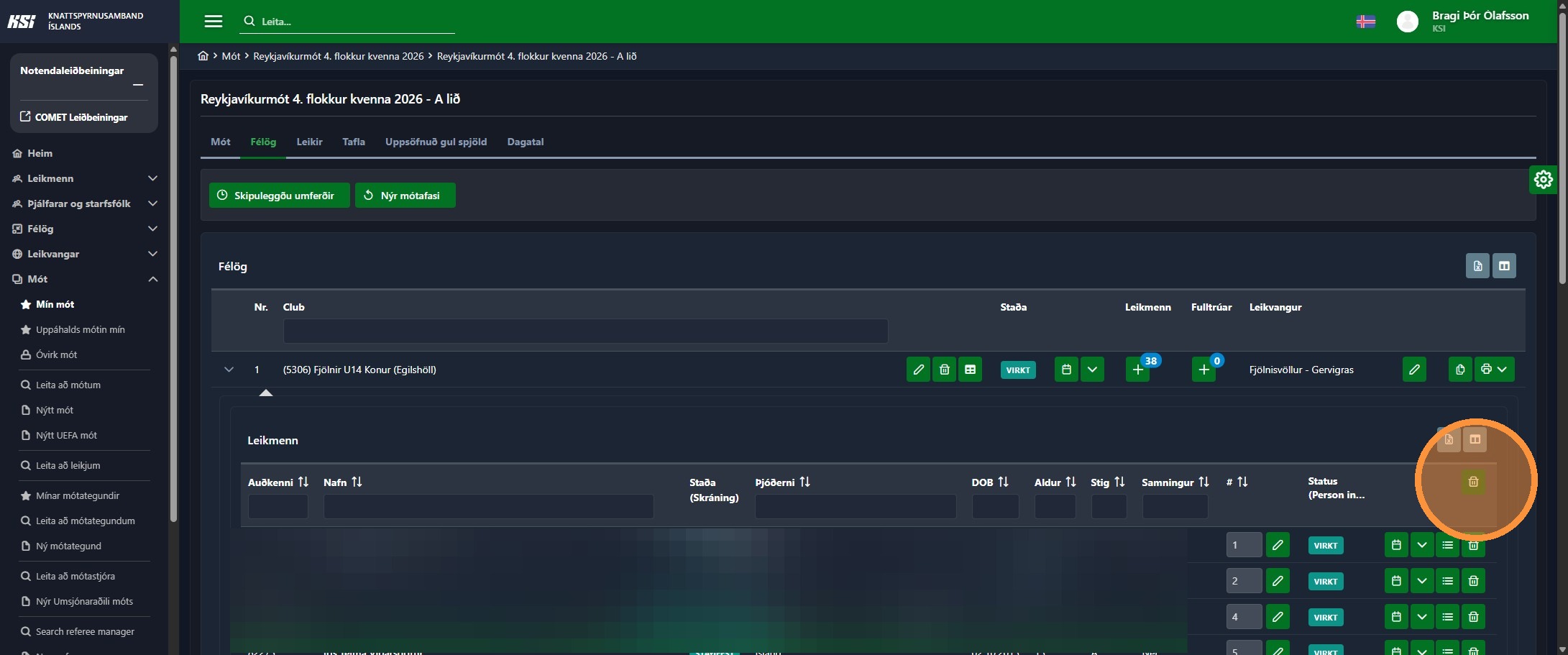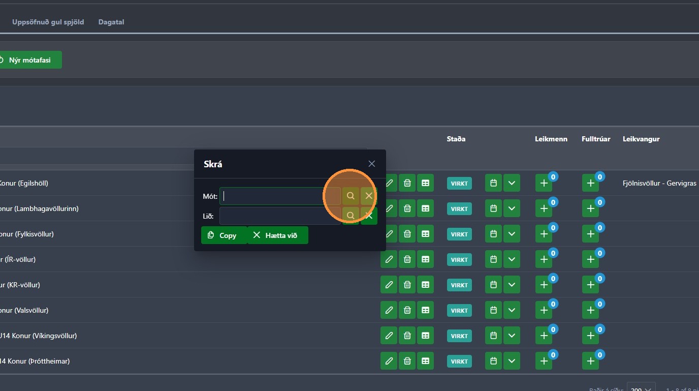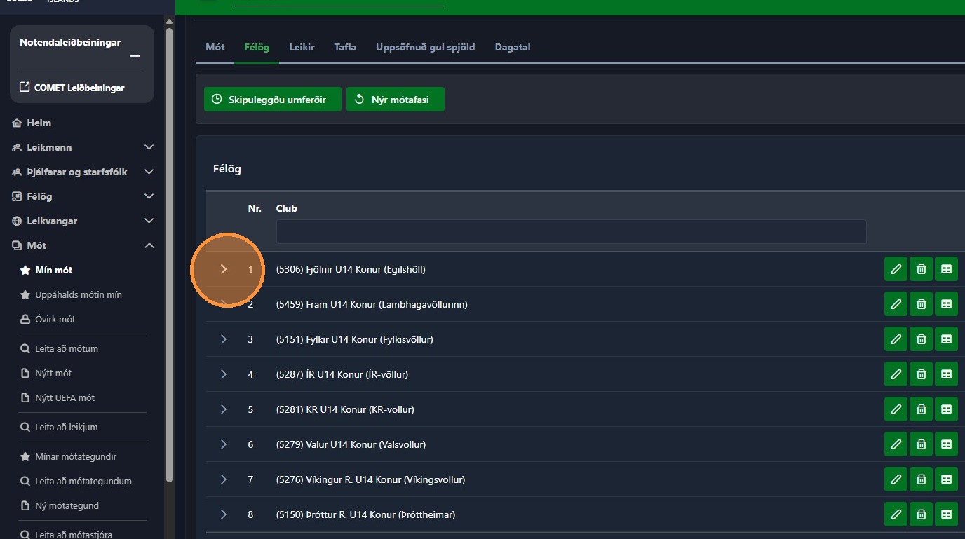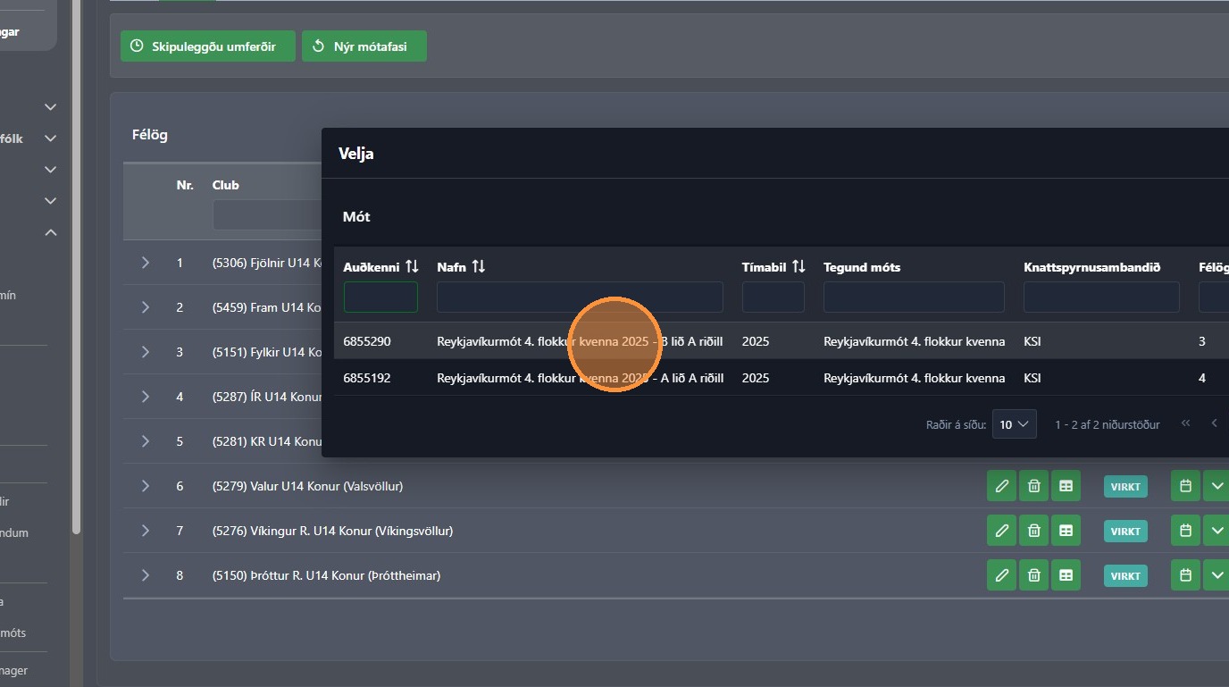 1. Farðu inni í rétta mótið þar sem þú átt eftir að setja inn leikmannalista