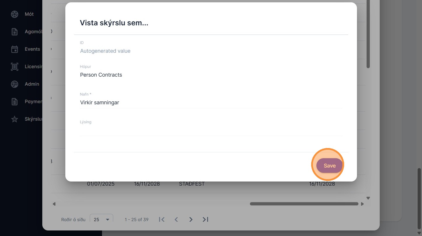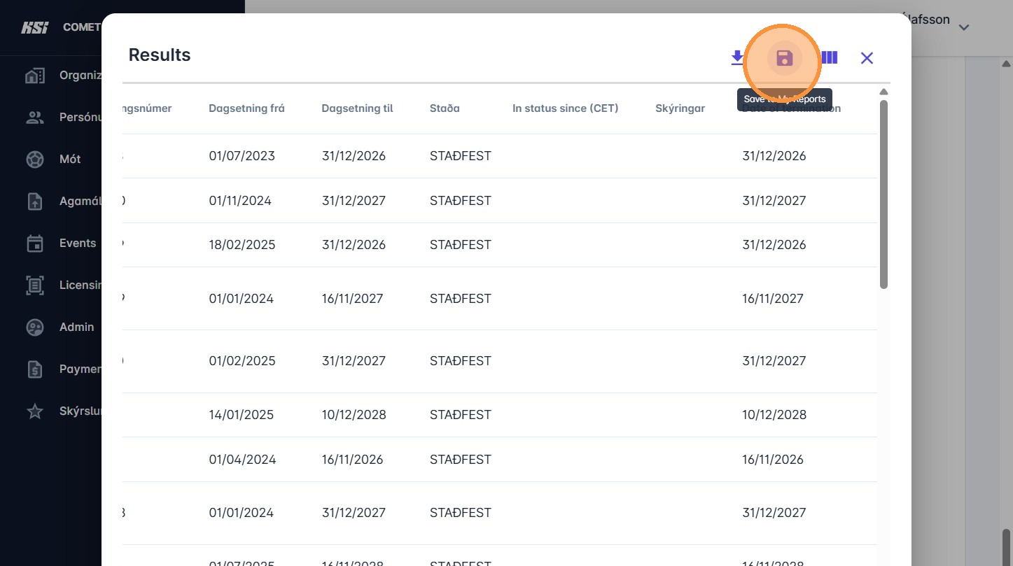 13. Gefðu skýrslunni nafn og smelltu á "Save"