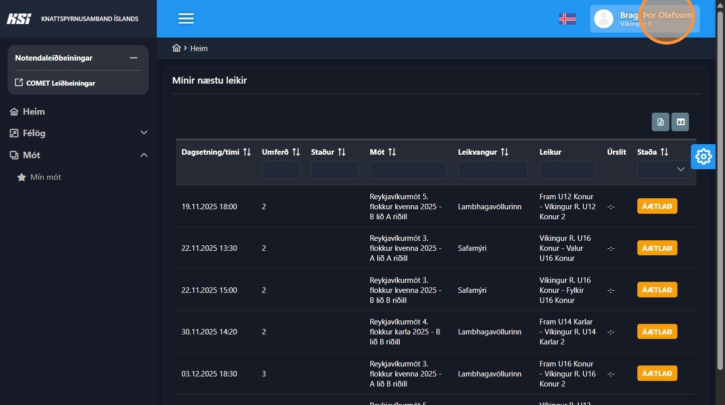 1. Smelltu á nafnið þitt í hægra horni