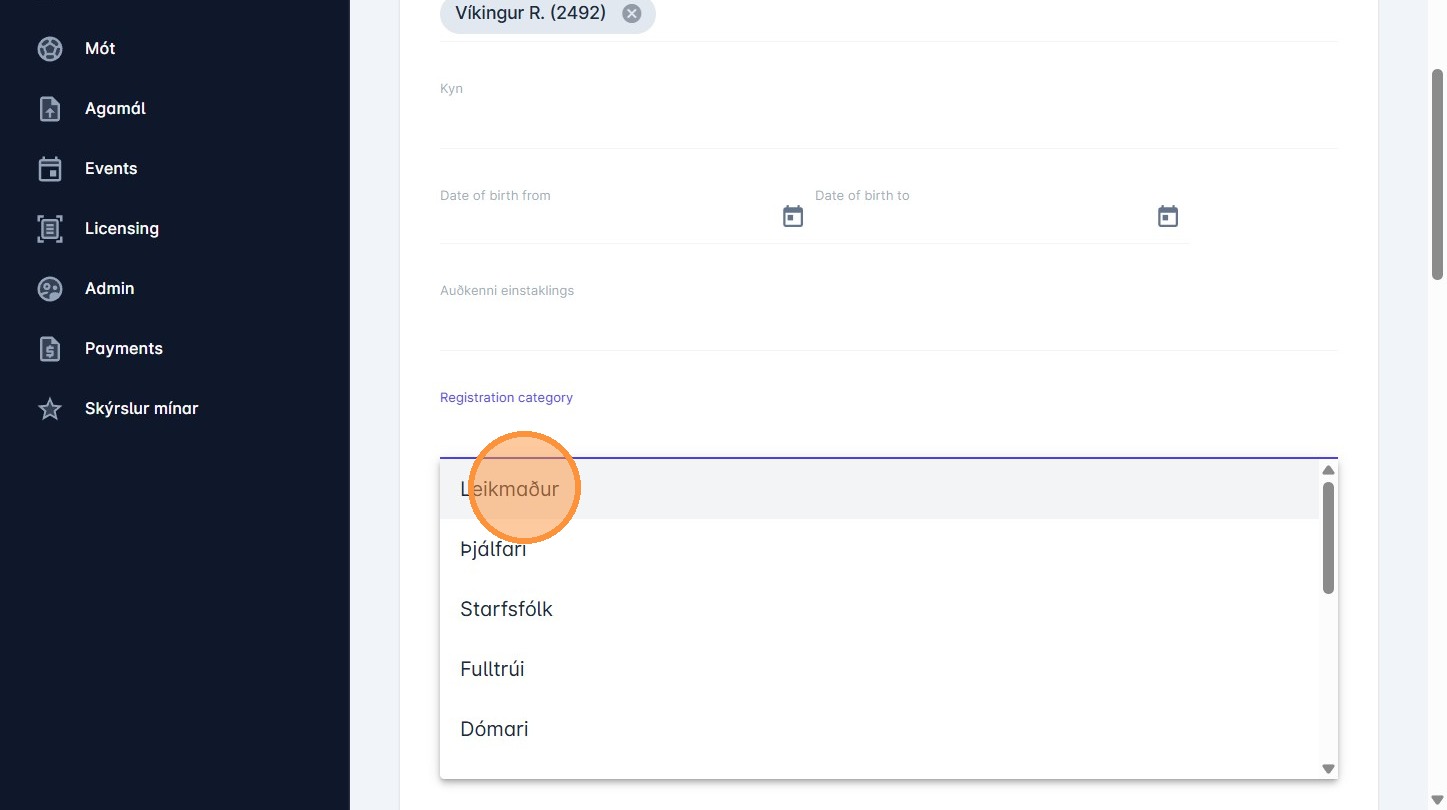 5. Smelltu á "Registration category"