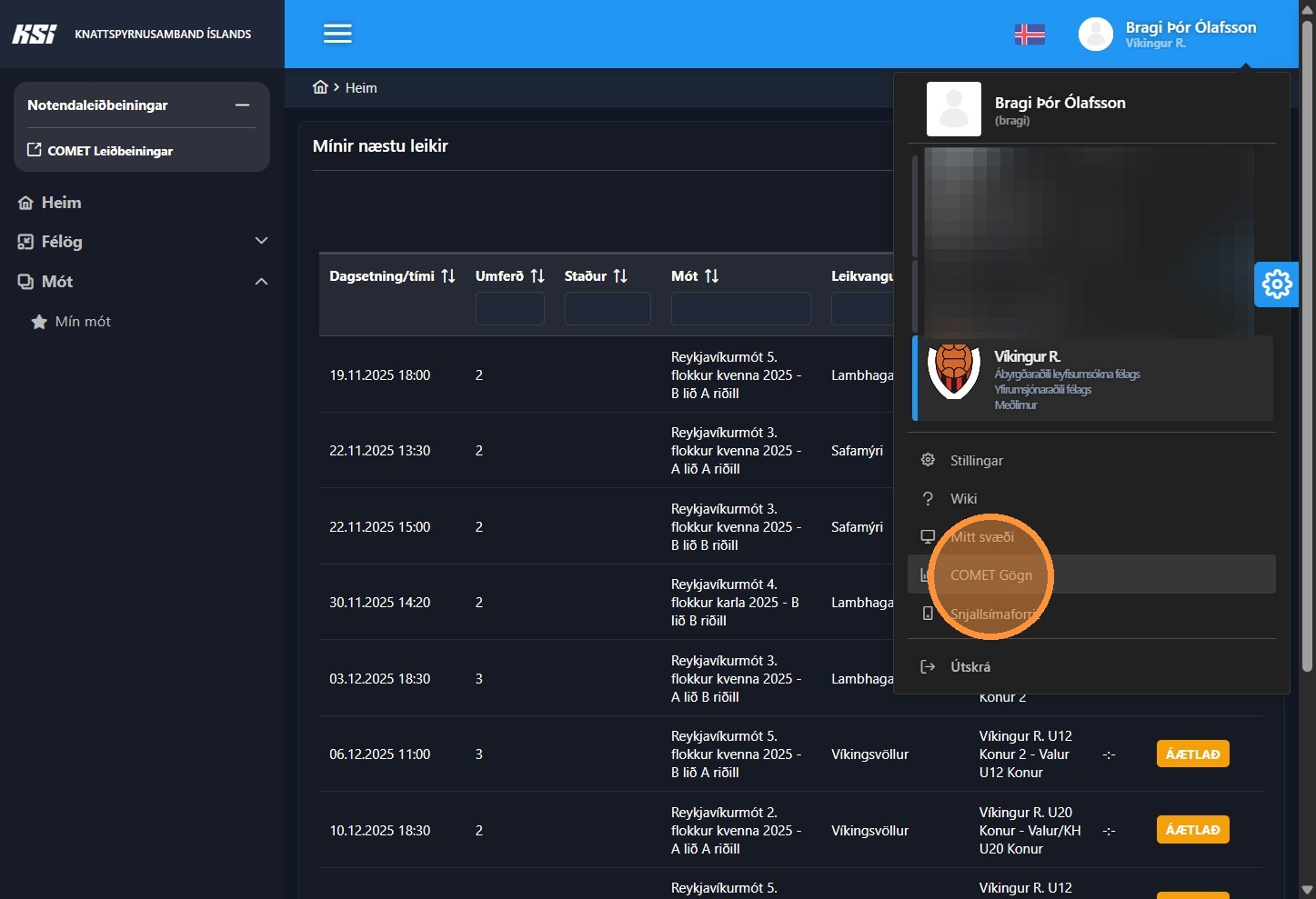 2. Smelltu á "COMET Gögn"