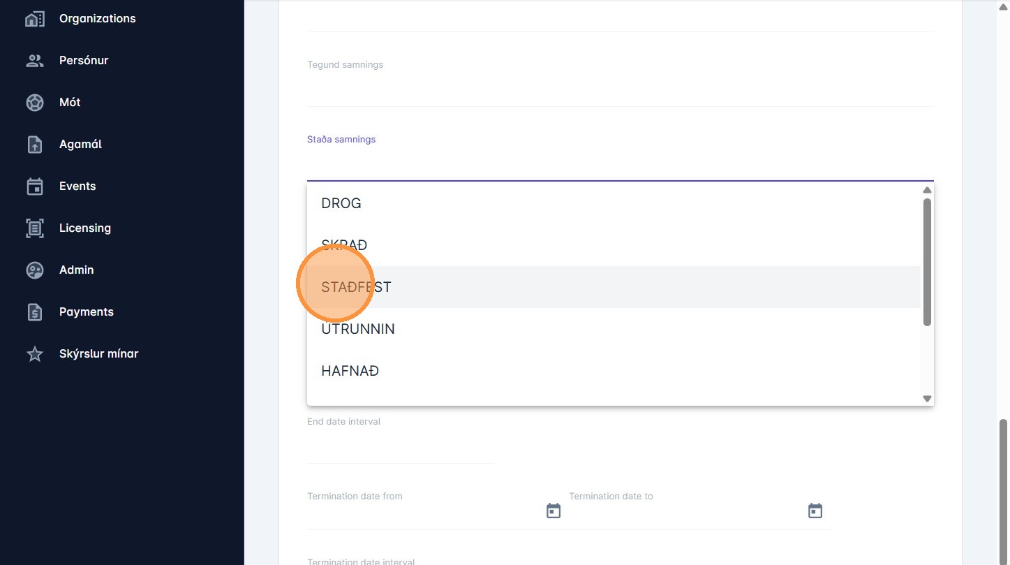 7. Smelltu á "Staða samnings"
