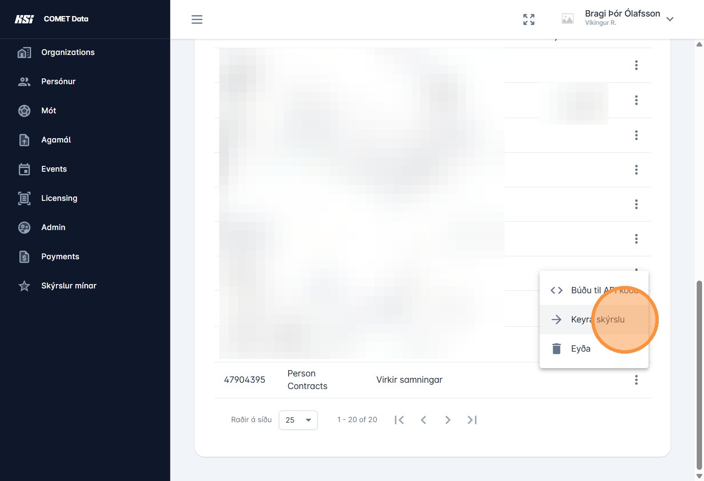 VARÚÐ! Vegna villu í uppsetningu er mögulegt að misræmi sé milli upplýsinga úr skýrslunni og samninga sem hafa verið samþykktir af KSÍ. Unnið er að lausn, við biðjumst velvirðingar á þessu. Mikilvægt er að fara vel yfir listann og bera saman við eigin gögn.
